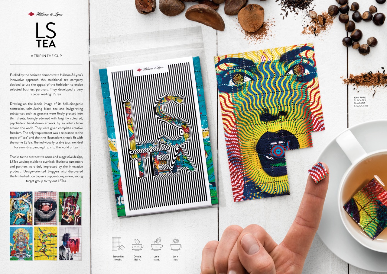 Bei dieser Kunden-Promotion-Aktion, die gemeinsam mit der Kreativagentur Kolle Rebbe umgesetzt wurde, handelte es sich um hauchdünn gepresste Teeblätter, die mit psychedelischen Motiven von sechs internationalen Illustratoren bedruckt wurden und sich durchaus provokativ an den Look der LSD-Pappen der 60er Jahre anlehnten. Selbstverständlich handelte es sich in diesem Fall ausschließlich um belebende Schwarzteemischungen mit Guaraná und Kolanuss. Auch dieses Produkt wurde in aufwändiger Handarbeit hergestellt.